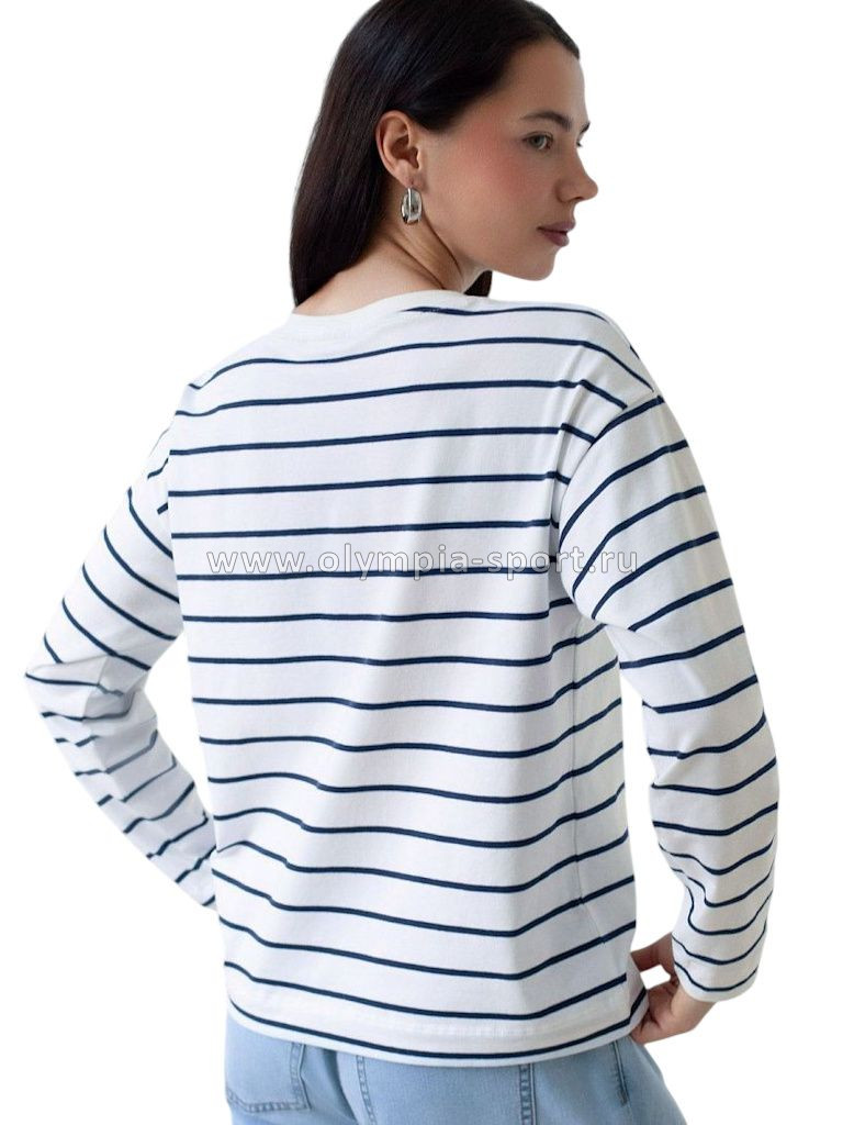 Свободный лонгслив белого цвета в темно-синюю полоску с длинным рукавом выполнен из премиального хлопка с добавлением эластана, плотностью 170 Г/м2, что обеспечивает комфорт и приятные тактильные ощущения. Принт полоска - придает изделию легкую текстурность и стильный вид, а круглый ворот создает универсальный образ, который подойдет для повседневного использования. Такой лонгслив идеально подходит для весеннего и летнего сезона благодаря легкой и дышащей ткани. Представленная широкая размерная линейка позволяет выбрать оптимальный вариант на любую фигуру, в том числе на плюс-сайз, обеспечивая свободу движений и удобство на каждый день. Этот комфортный лонгслив станет отличной базой в гардеробе, сочетаясь с различными стилями одежды и создавая простой, но эффектный образ.